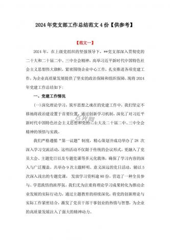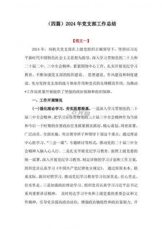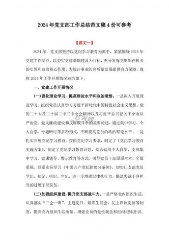2024年党支部工作总结范文稿4份可参考