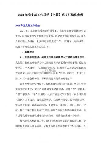 2024年党支部工作总结【七篇】范文汇编供参考