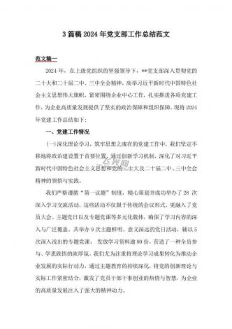 三篇:2024年党支部工作总结范文稿