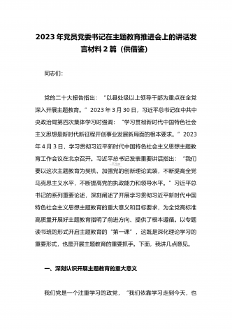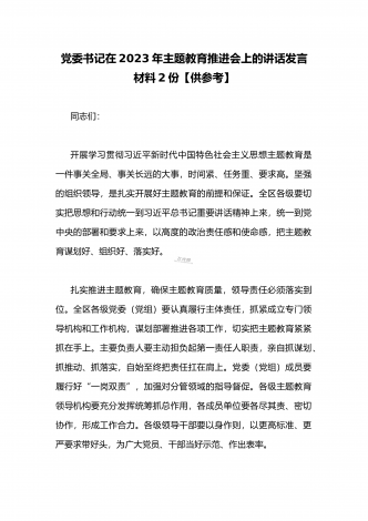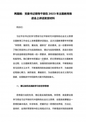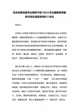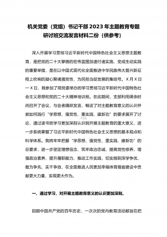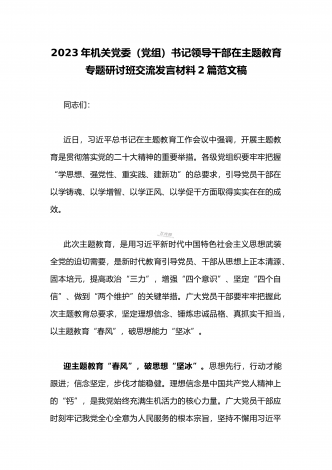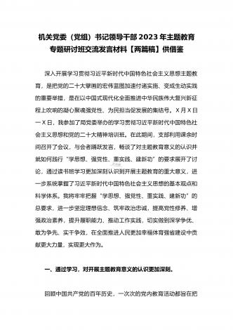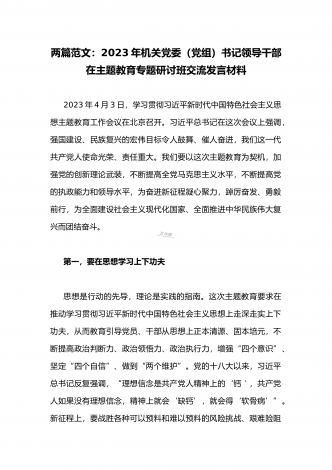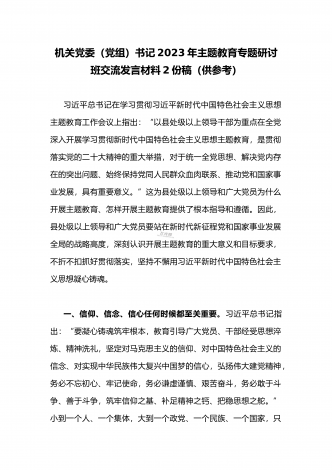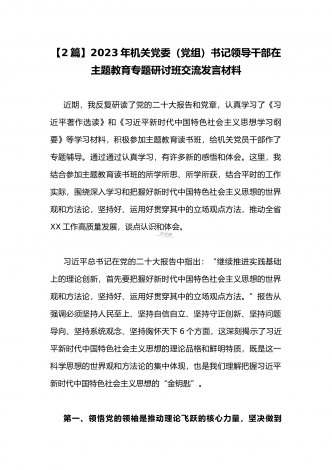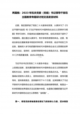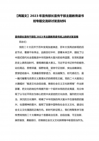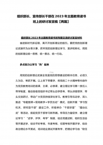 2023年宣传部长宣传干部、组织部长2023年主题教育读书班专题交流研讨发言材料【两篇文】