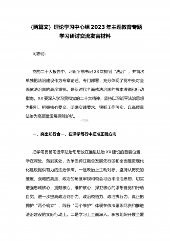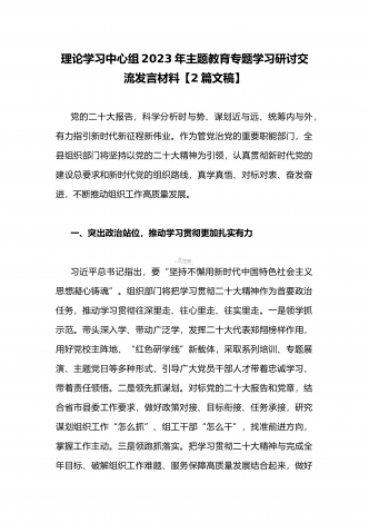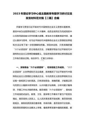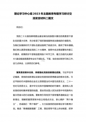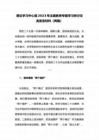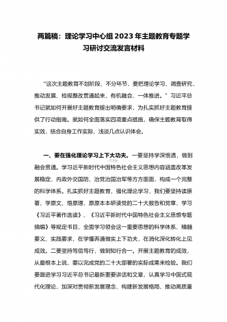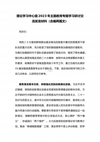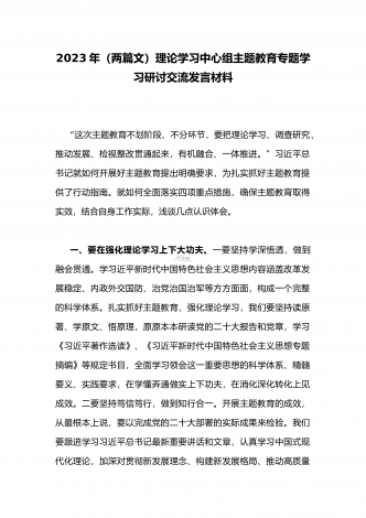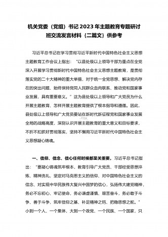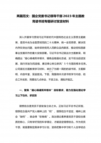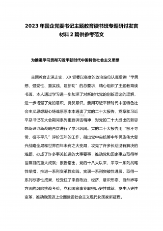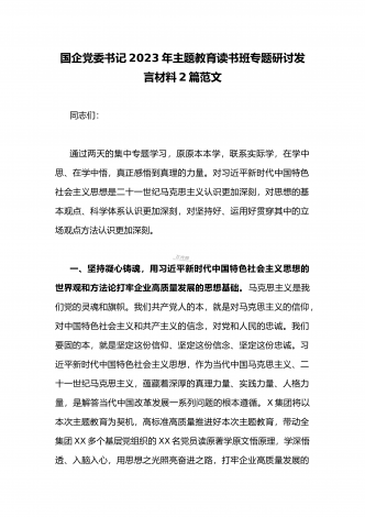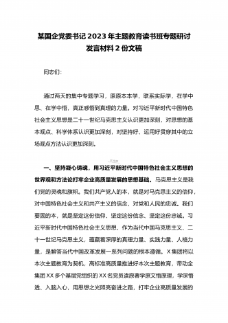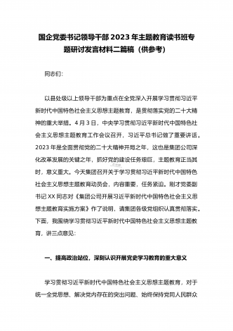 国企党委书记领导干部2023年主题教育读书班专题研讨发言材料二篇稿(供参考)