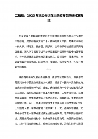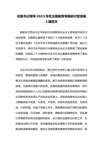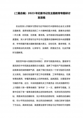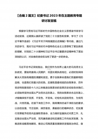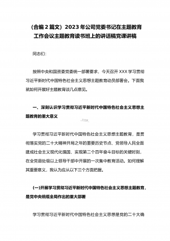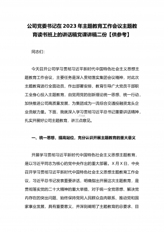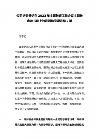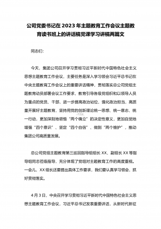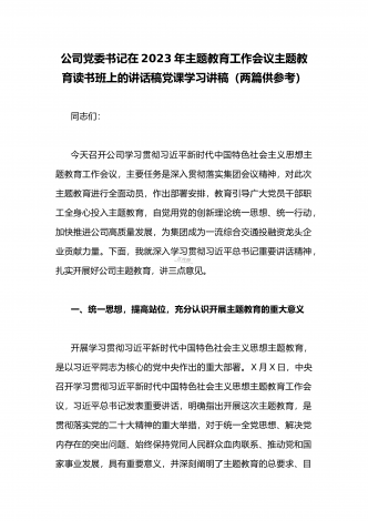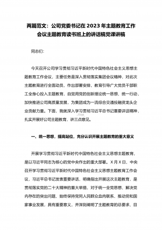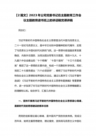 公司党委书记在2023年主题教育工作会议主题教育读书班上的讲话稿党课学习讲稿(两篇供参考)