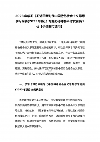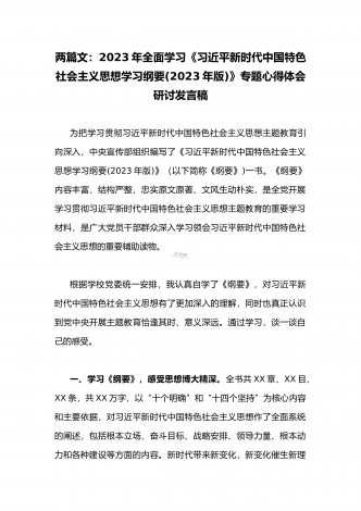 2023年学习《习近平新时代中国特色社会主义思想学习纲要(2023年版)》专题心得体会研讨发言稿2份【供借鉴可选用】