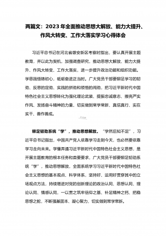 2023年学习《习近平新时代中国特色社会主义思想学习纲要(2023年版)》专题心得体会研讨发言稿2份【供借鉴可选用】“时代是思想之母,实践是理论之源。”这是习近平新时代中国特色社会主义思想重要理论凝结的精华。在全党开展学习贯彻习近平新时代中国特色社会主义思想主题教育之际,作为一名基层党支部书记、一名职业教育工作者,要全面深入学习《习近平新时代中国特色社会主义思想学习纲要(2023年版)》,读原著、学原文、悟原理,深刻领会、努力践行习近平新时代中国特色社会主义思想,当好学生的引路人,办好人民满意的...