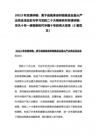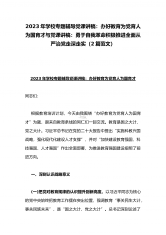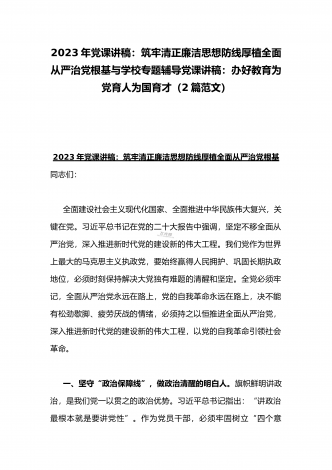 2023年纪检监察干部队伍教育整顿专题学习党课稿:筑牢廉洁防线争做监察尖兵与党课讲稿:深刻领悟“两个确立”的决定性意义推动党的大会精神学习宣传贯彻走深走实(2篇范文)2023年纪检监察干部队伍教育整顿专题学习党课稿:筑牢廉洁防线争做监察尖兵同志们:中央决定在全国纪检监察系统干部中开展教育整顿工作,是深入贯彻党的二十大精神、锻造堪当新时代新征程重任的高素质纪检监察干部队伍的需要,正当其时、适逢其势、意义重大。作为一名纪检监察干部,要在这次教育整顿中自觉接受政治上的洗礼、思想上的清洗、作风上的检视,...