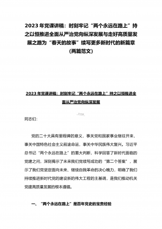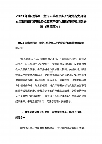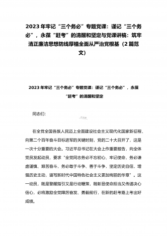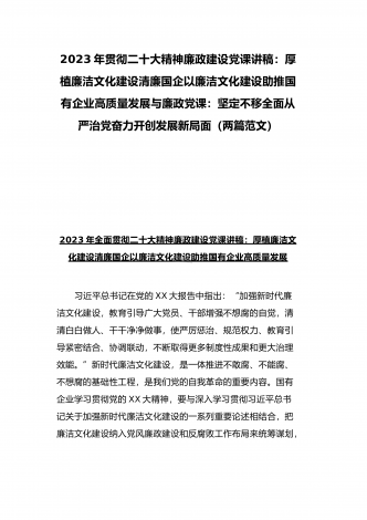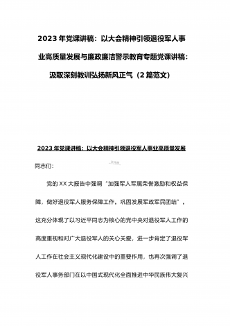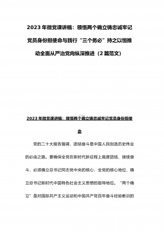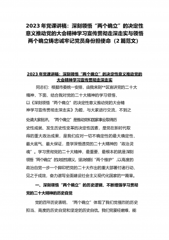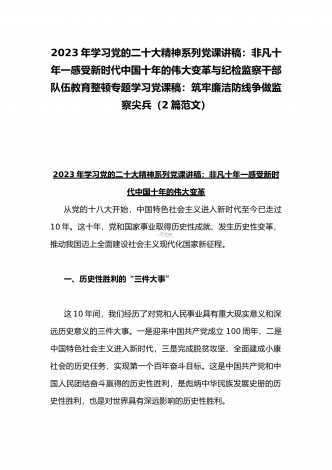 2023年纪检监察干部队伍教育整顿专题学习党课稿:筑牢廉洁防线争做监察尖兵与党课讲稿:深刻领悟“两个确立”的决定性意义推动党的大会精神学习宣传贯彻走深走实(2篇范文)
