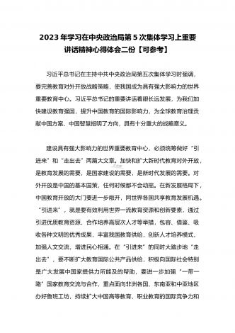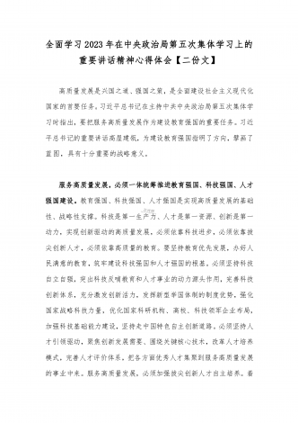 全面学习2023年在中央政治局第五次集体学习上的重要讲话精神心得体会【二份文】