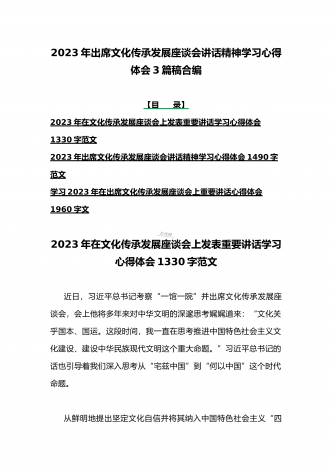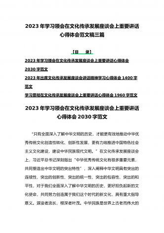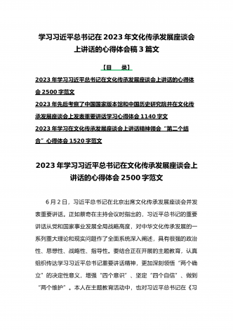 2023年学习在文化传承发展座谈会上讲话精神“两个结合”重要论断心得体会稿3篇文