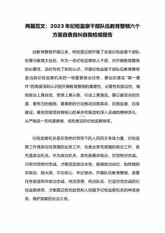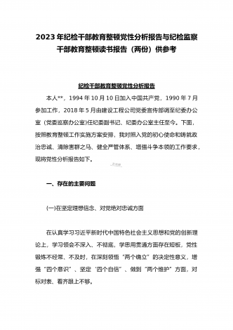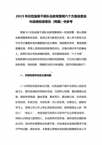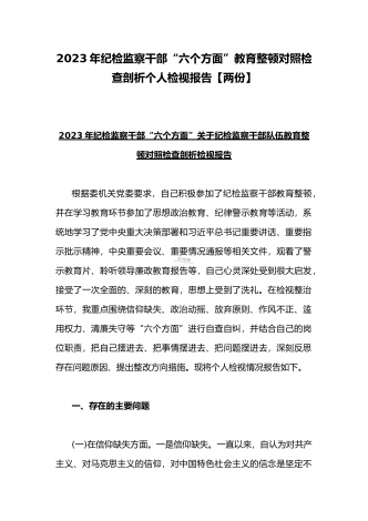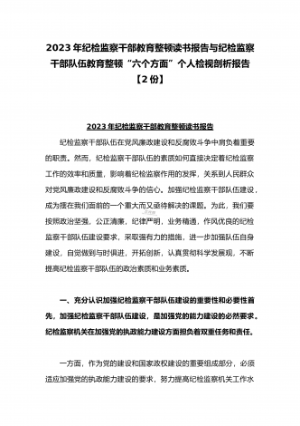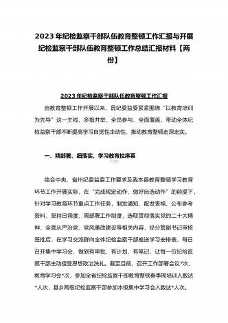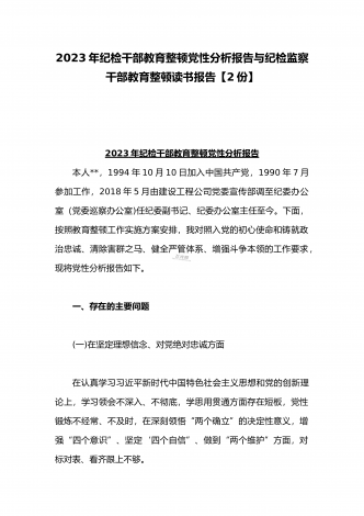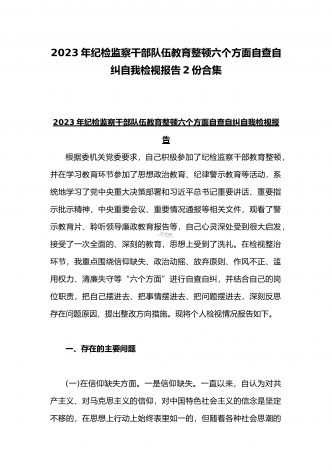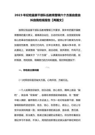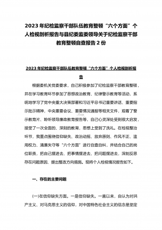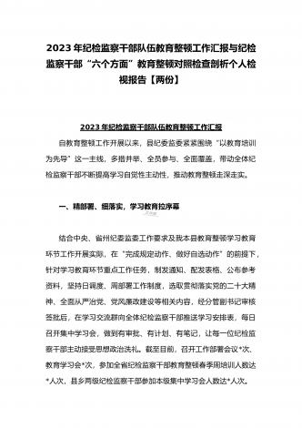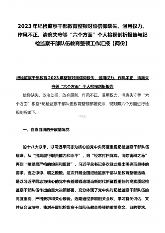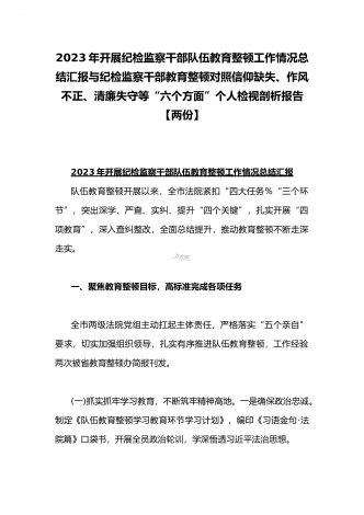 2023年开展纪检监察干部队伍教育整顿工作情况总结汇报与纪检监察干部教育整顿对照信仰缺失、作风不正、清廉失守等“六个方面”个人检视剖析报告【两份】