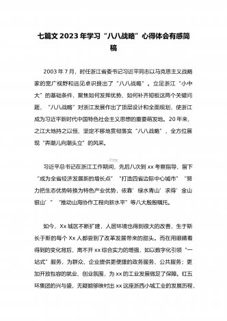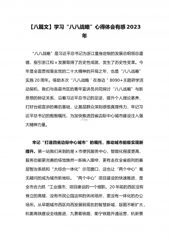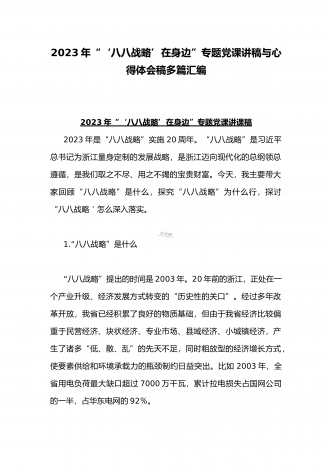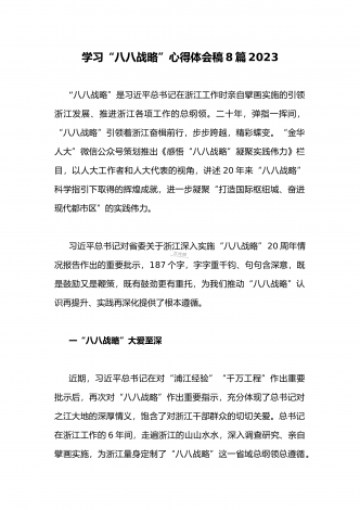 (多篇)2023年学习“八八战略”心得体会有感【附:“‘八八战略’在身边”专题党课讲稿】