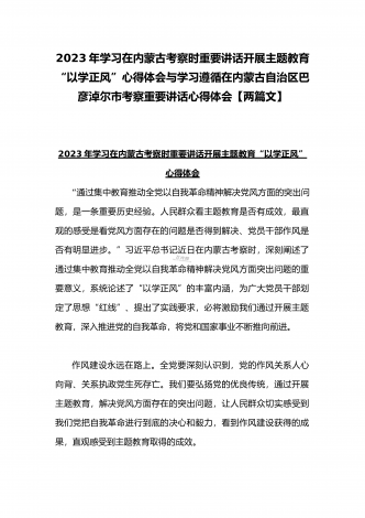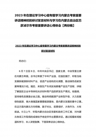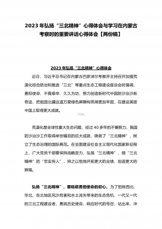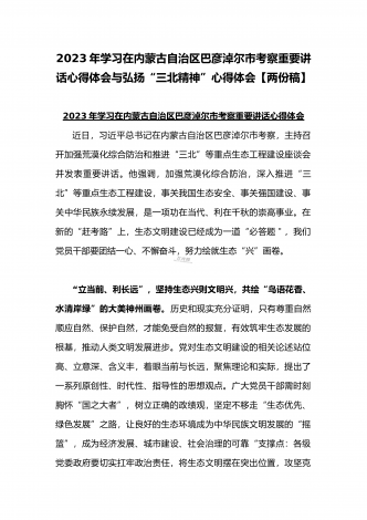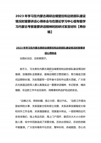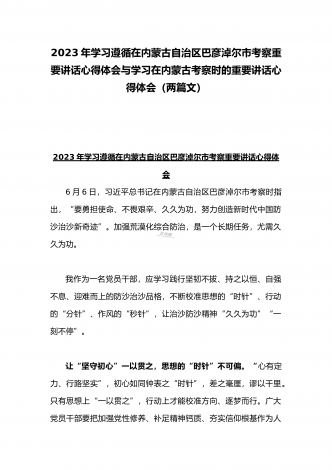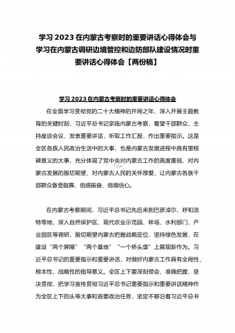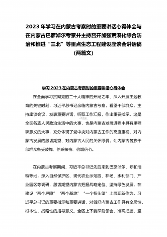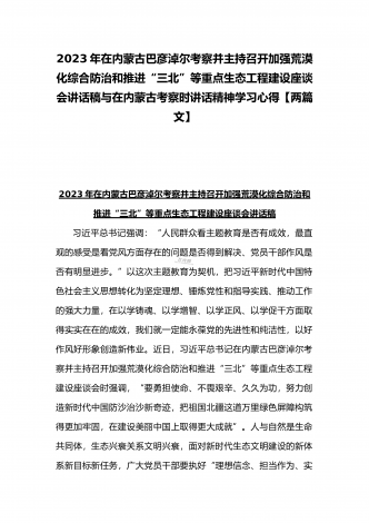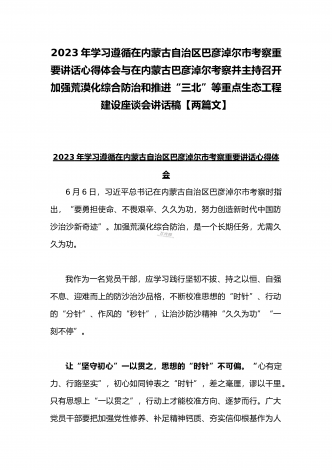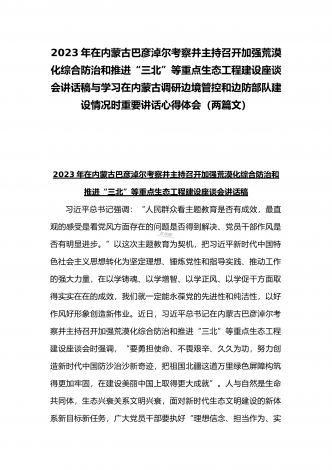 2023年在内蒙古巴彦淖尔考察并主持召开加强荒漠化综合防治和推进“三北”等重点生态工程建设座谈会讲话稿与学习在内蒙古调研边境管控和边防部队建设情况时重要讲话心得体会(两篇文)