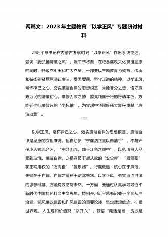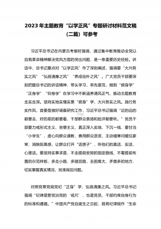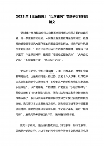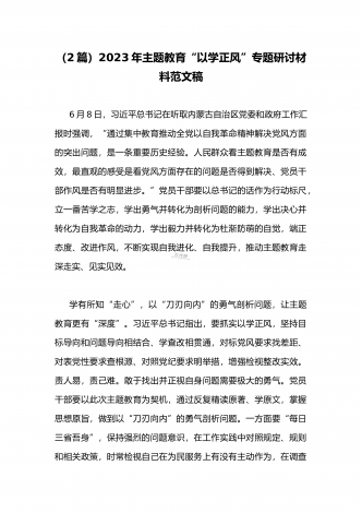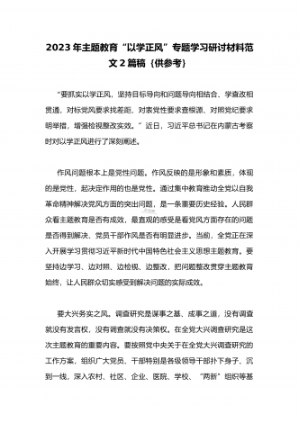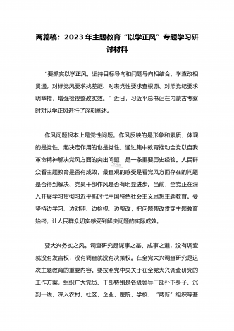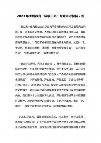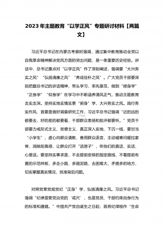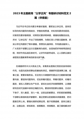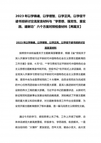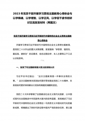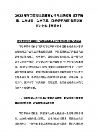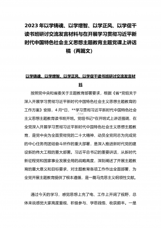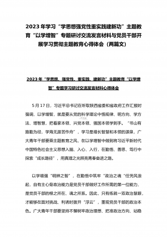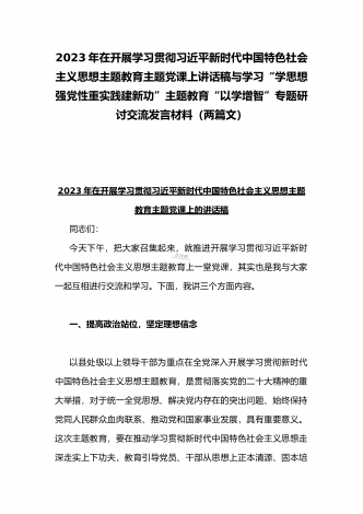 2023年在开展学习贯彻习近平新时代中国特色社会主义思想主题教育主题党课上讲话稿与学习“学思想强党性重实践建新功”主题教育“以学增智”专题研讨交流发言材料(两篇文)