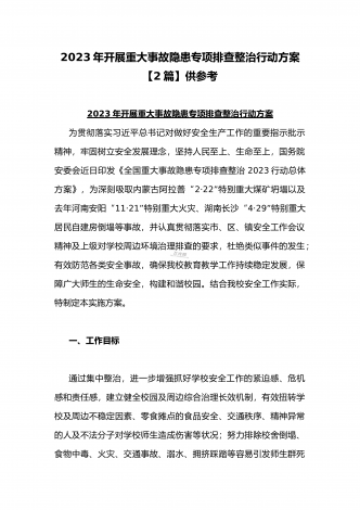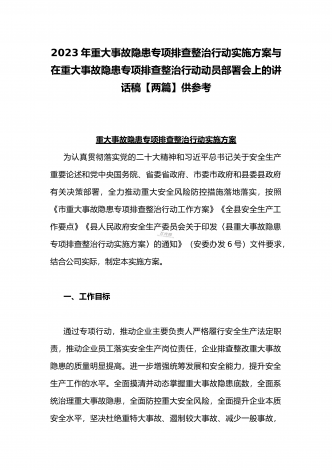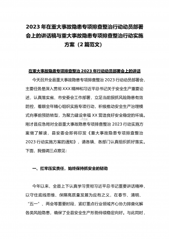2023年在重大事故隐患专项排查整治行动动员部署会上的讲话稿与学校开展重大事故隐患专项排查整治行动方案【两篇】供参考