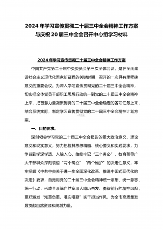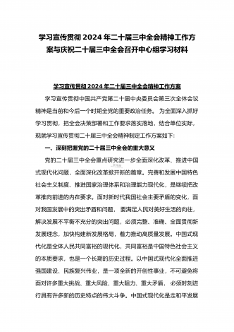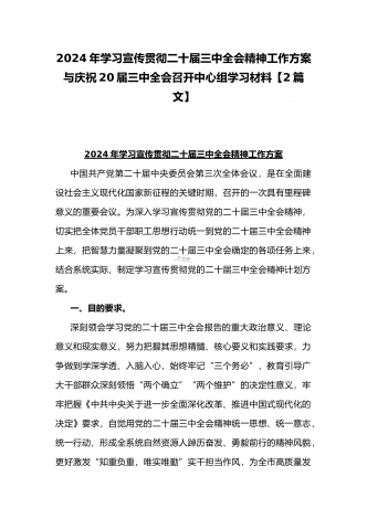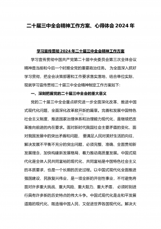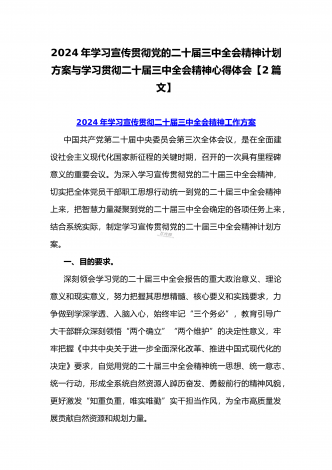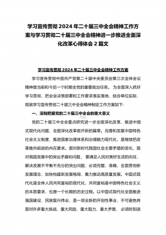 学习宣传贯彻2024年二十届三中全会精神工作方案与学习贯彻二十届三中全会精神进一步推进全面深化改革心得体会2篇文