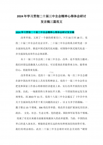 学习宣传贯彻2024年二十届三中全会精神工作方案与学习贯彻二十届三中全会精神进一步推进全面深化改革心得体会2篇文学习宣传贯彻2024年二十届三中全会精神工作方案学习宣传贯彻中国共产党第二十届中央委员会第三次全体会议精神是当前和今后一个时期全党的重要政治任务。为全面深入抓好学习贯彻,把全会决策部署和工作要求落实落地,结合单位实际,现就学习宣传贯彻二十届三中全会精神制定工作方案如下:一、深刻把握党的二十届三中全会的重大意义党的二十届三中全会重点研究进一步全面深化改革、推进中国式现代化问题,全面深化改...