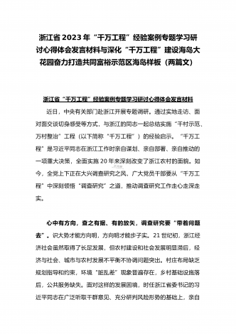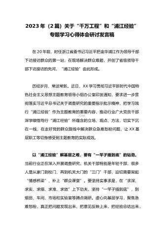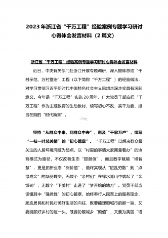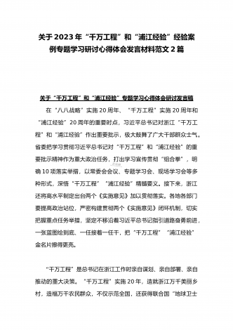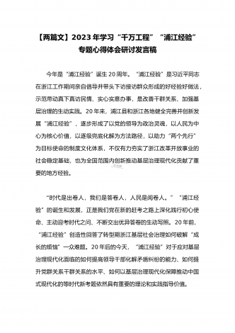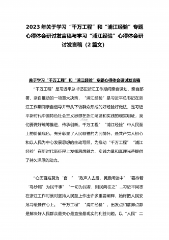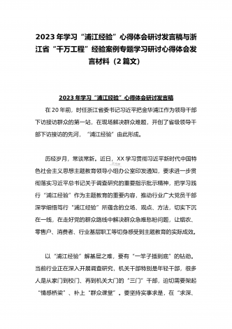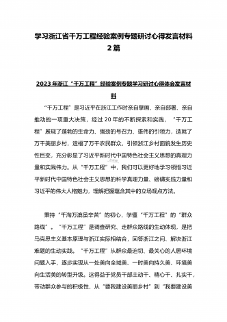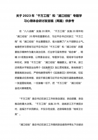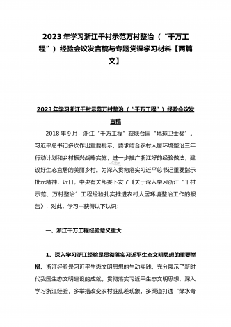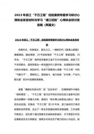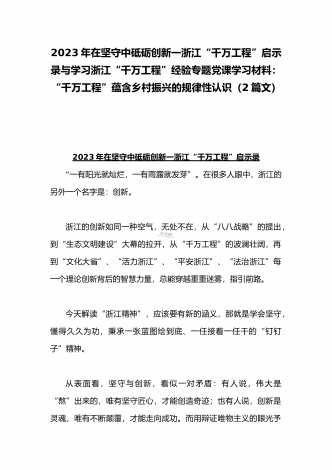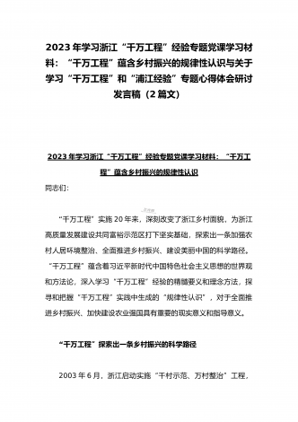 2023年学习浙江“千万工程”经验专题党课学习材料:“千万工程”蕴含乡村振兴的规律性认识与关于学习“千万工程”和“浦江经验”专题心得体会研讨发言稿(2篇文)
