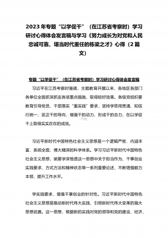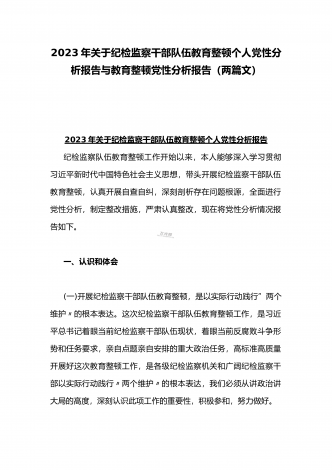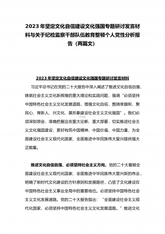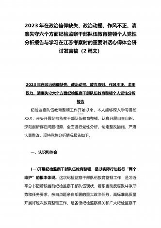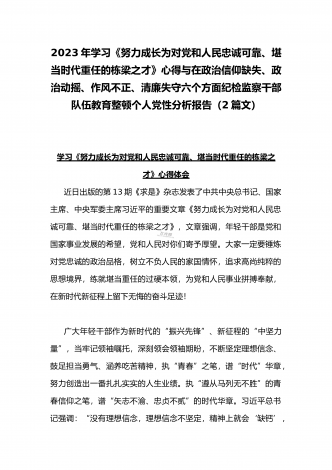 2023年学习《努力成长为对党和人民忠诚可靠、堪当时代重任的栋梁之才》心得与在政治信仰缺失、政治动摇、作风不正、清廉失守六个方面纪检监察干部队伍教育整顿个人党性分析报告(2篇文)