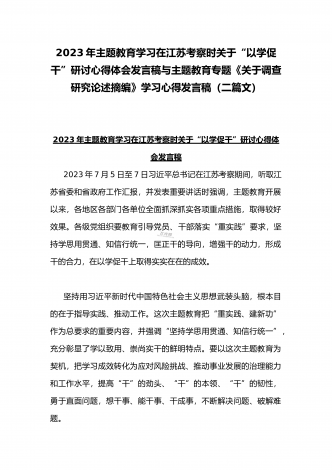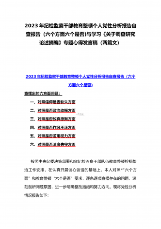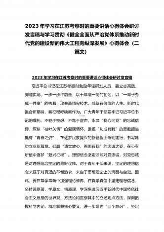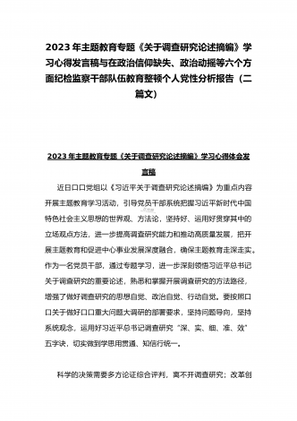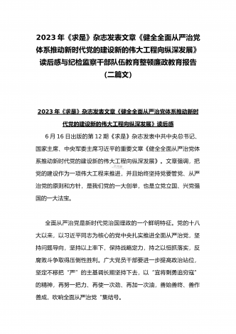 2023年贯彻学习《关于调查研究论述摘编》专题心得体会发言稿与《求是》杂志发表文章《健全全面从严治党体系推动新时代党的建设新的伟大工程向纵深发展》读后感(二篇文)