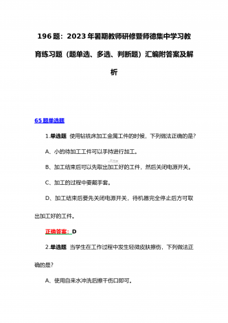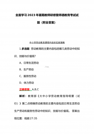 集中学习2023年暑期教师研修暨师德教育练习考试题(多选题判断题)汇编【附答案及解析】