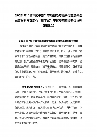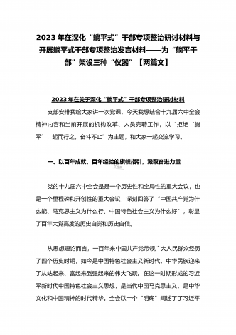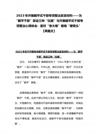 2023年开展躺平式干部专项整治发言材料——为“躺平干部”架设三种“仪器”与开展躺平式干部专项整治心得体会:面对“老大难”敢啃“硬骨头”【两篇文】