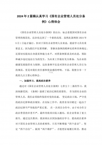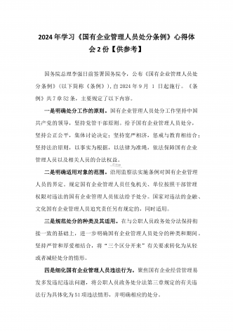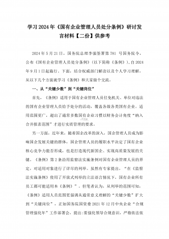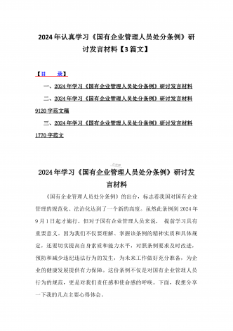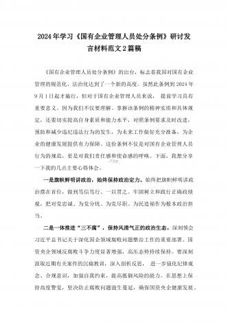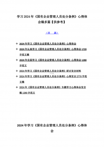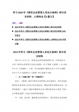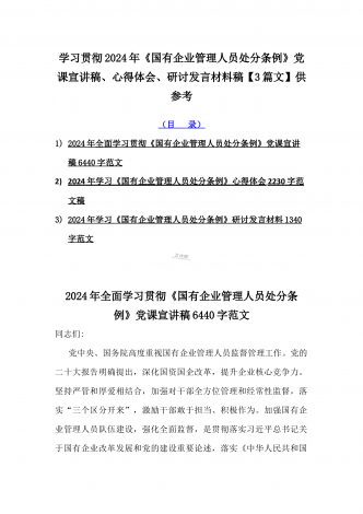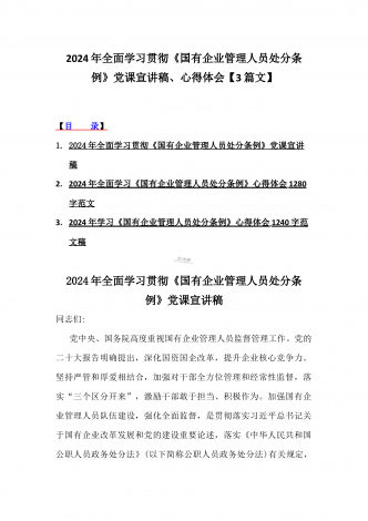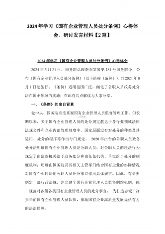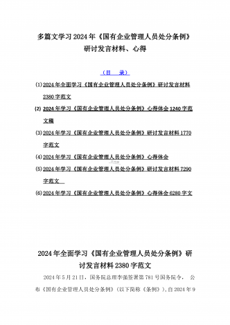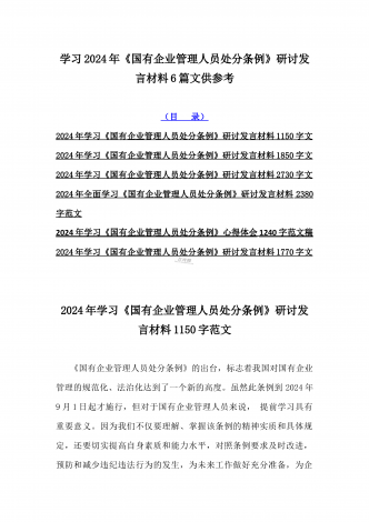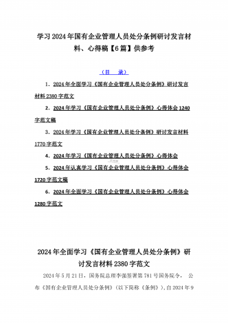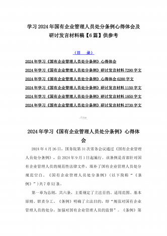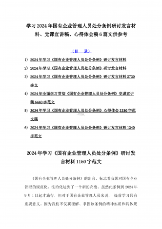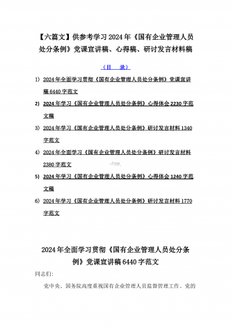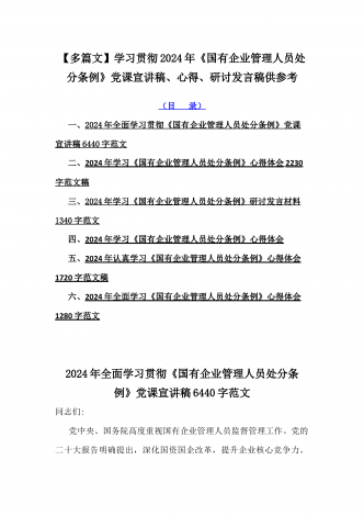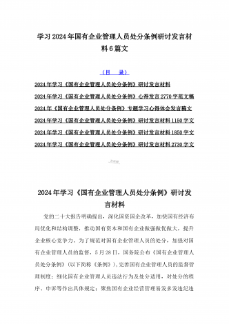 学习贯彻《国有企业管理人员处分条例》党课宣讲稿、心得体会、研讨发言材料稿2024年【6篇文】供参考