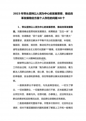 2023年带头坚持以人民为中心的发展思想,推动改革发展稳定方面个人存在的问题60个