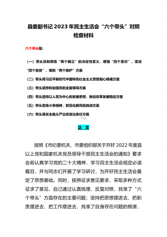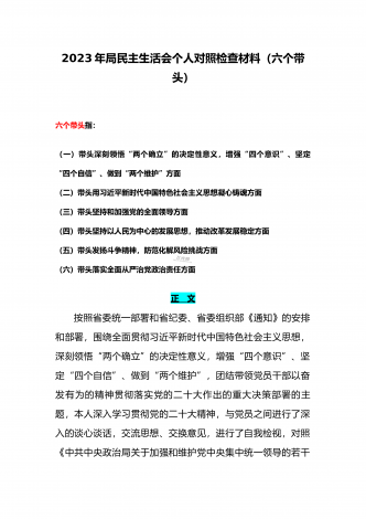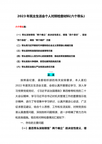 2023年带头坚持以人民为中心的发展思想,推动改革发展稳定方面个人存在的问题60个1、带头坚持以人民为中心的发展思想,推动改革发展稳定。完整准确全面贯彻新发展理念,统筹推进“五位一体”总体布局、协调推进“四个全面”战略布局,紧扣“四个更大”重要要求,紧紧抓住解决不平衡不充分的发展问题,补短板、强弱项、固底板、扬优势,推动经济社会持续健康发展,奋力谱写全面建设社会主义现代化国家***篇章。在发展中保障和改善民生,聚焦解决人民群众急难愁盼问题,让人民群众看到学习贯彻党的二十大精神的实际成效。能够带头...