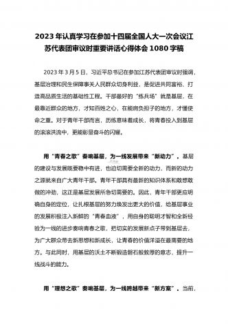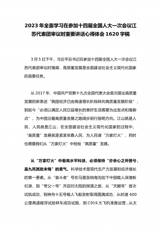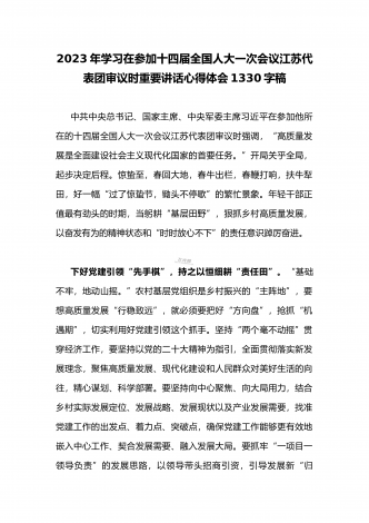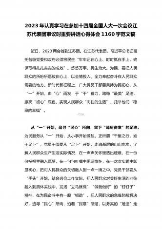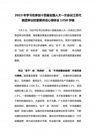 2023年认真学习在参加十四届全国人大一次会议江苏代表团审议时重要讲话心得体会1160字范文稿