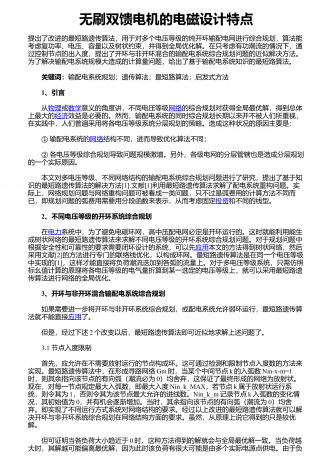 无刷双馈电机的电磁设计特点提出了改进的最短路遗传算法,用于对多个电压等级的纯开环输配电网进行综合规划,算法能考虑复功率、电压、容量以及树状约束,并得到全局优化解。在只考虑有功潮流的情况下,通过控制节点的出入度,提出了开环与非开环混合的输配电系统综合规划问题的近似解决方法。为了解决输配电系统规模大造成的计算量问题,给出了基于输配电系统知识的最短路算法。关键词:输配电系统规划;遗传算法;最短路算法;启发式方法1、引言从物理或数学意义的角度讲,不同电压等级网络的综合规划对获得全局最优解,得到总体上最大...