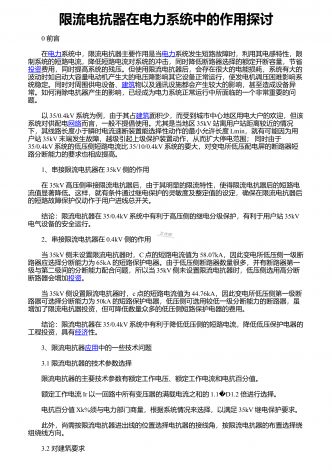 限流电抗器在电力系统中的作用探讨 0 前言 在电力系统中,限流电抗器主要作用是当电力系统发生短路故障时,利用其电感特性,限制系统的短路电流,降低短路电流对系统的冲击,同时降低断路器选择的额定开断容量,节省投资费用,同时提高系统的残压。但使用限流电抗器后,会存在很大的电能损耗,系统有大的波动时如启动大容量电动机产生大的电压降影响其它设备正常运行,使发电机调压困难影响系统稳定。同时对周围供电设备、建筑物以及通讯设施都会产生较大的影响,甚至造成设备异常。如何消除电抗器产生的影响,已经成为电力系统正...