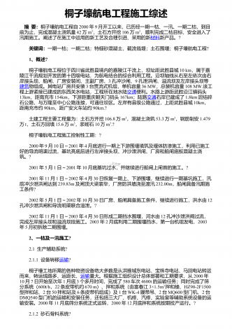 桐子壕航电工程施工综述 摘 要:桐子壕航电工程自2000年9月开工以来,已历经一期一枯、一汛、一期二枯,到目前为止,完成混凝土浇筑量42万m3,土石方开挖106万m3,顺利完成二枯目标,安全进入了汛期施工。阐述了在施工中运用的新工艺及合理引进、采用的新材料新产品。? 关键词:一期一枯;一期二枯;特细砂混凝土,截流戗堤;土石围堰;桐子壕航电工程? 1、概述? 桐子壕航电工程位于四川省武胜县境内的嘉陵江干流上,坝址距武胜县城10 km,属于嘉陵江干流规划开发的第十四级电站,为航电结合的综合...