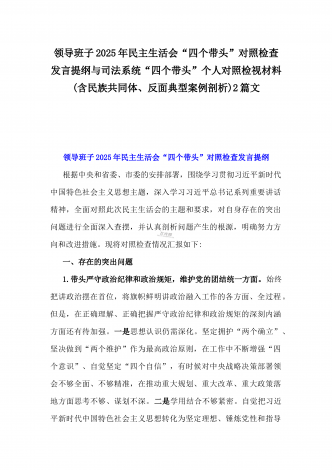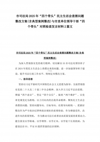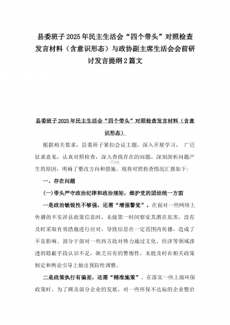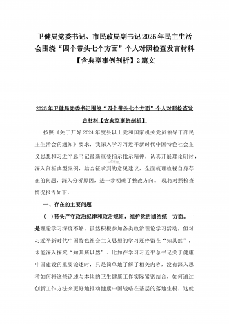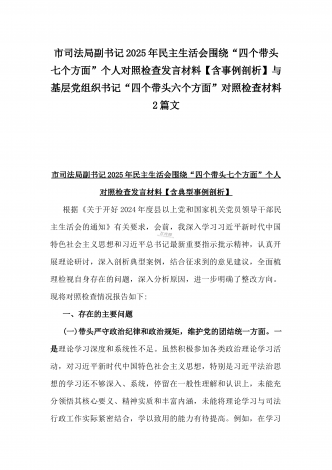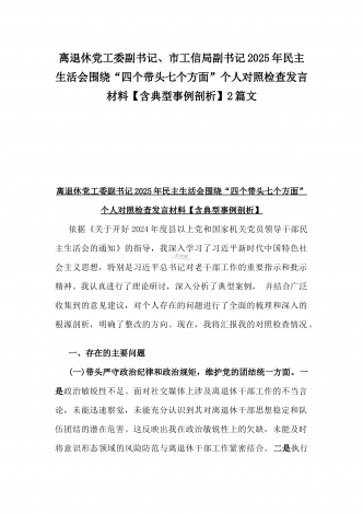 党委副书记2025年民主生活会“四个带头”个人对照检视发言材料(含反面典型案例剖析)与市投资促进局党支部书记“四个带头”个人对照检查发言材料【含意识形态】2篇文