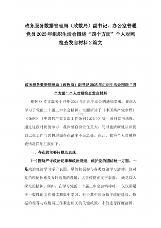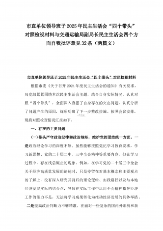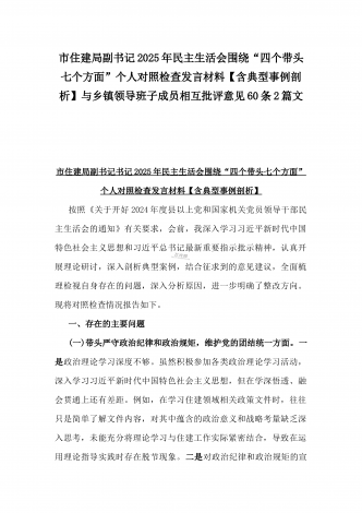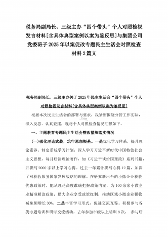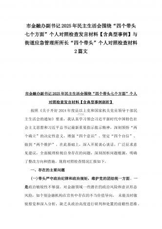党委副书记2025年民主生活会“四个带头”个人对照检视发言材料(含反面典型案例剖析)与市投资促进局党支部书记“四个带头”个人对照检查发言材料【含意识形态】2篇文党委副书记2025年民主生活会“四个带头”个人对照检视发言材料(含反面典型案例剖析)2024年,在学校党委的坚强领导下,我校各项工作取得了一定成绩,但通过深入反思和自我检视,我也清醒地认识到自身存在的一些问题。按照市委关于开好2024年度党员领导干部民主生活会的有关要求,本人深入学习领会党的二十届三中全会精神和习近平总书记系列重要讲话精神...