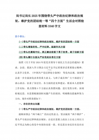 2025年专题生活会对照带头严守政治纪律和政治规矩,维护党的团结统一等“四个方面”个人对照检查发言材料与2024年生活会回复上级单位征求意见清单(四个带头方面)2篇文