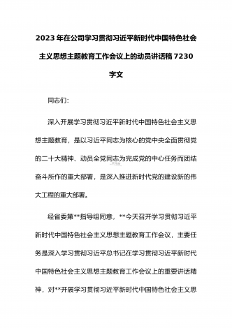 2023年在公司学习贯彻习近平新时代中国特色社会主义思想主题教育工作会议上的动员讲话稿7230字文