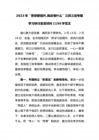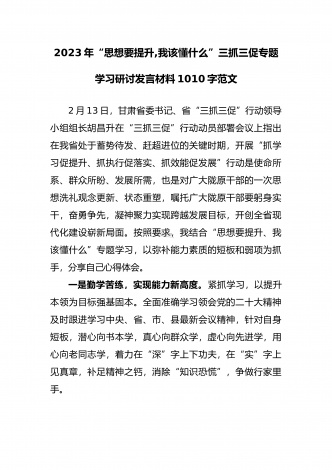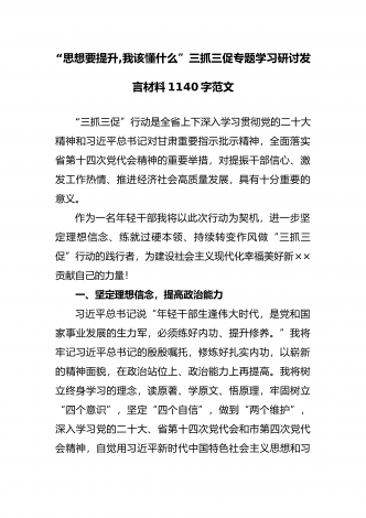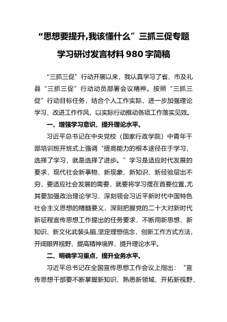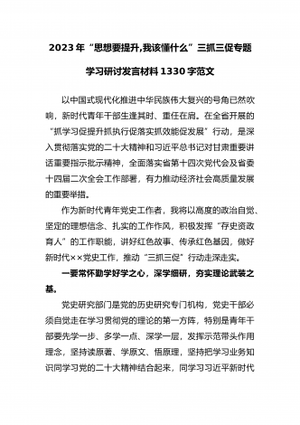 2023年“思想要提升,我该懂什么”三抓三促专题学习研讨发言材料1330字范文稿