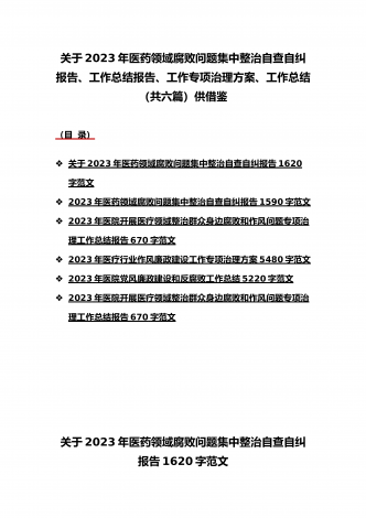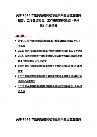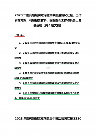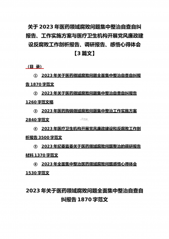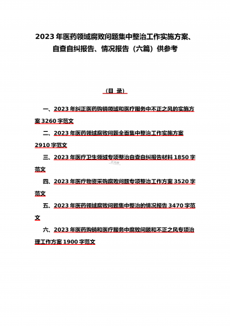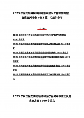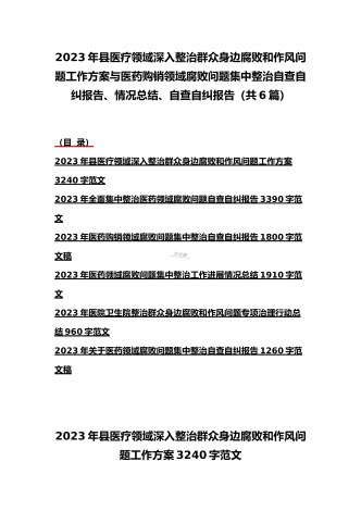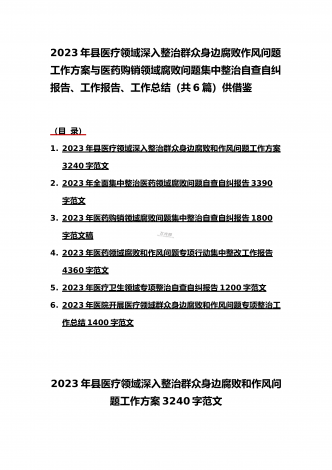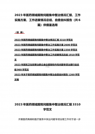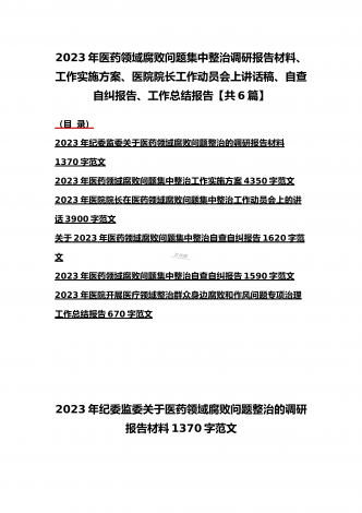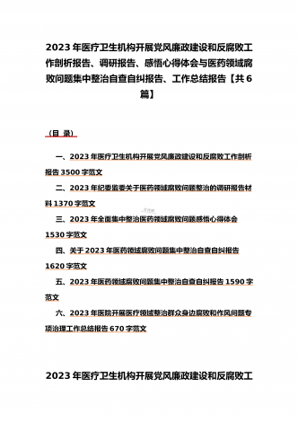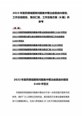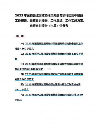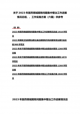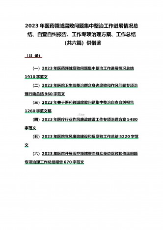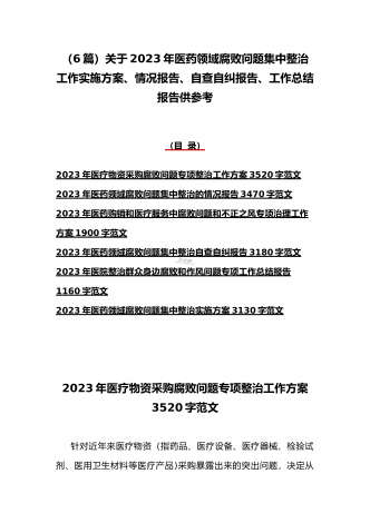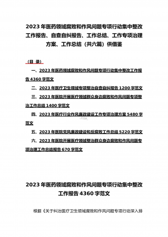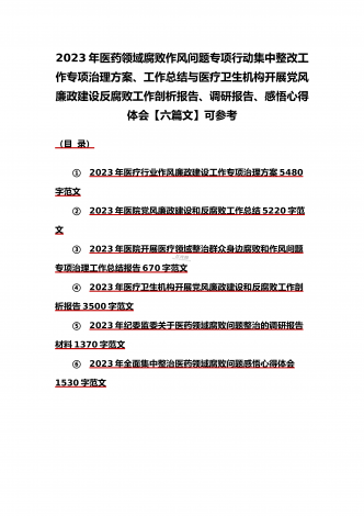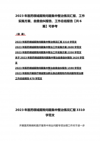 2023年医药领域腐败作风问题专项行动集中整改工作专项治理方案、工作总结与医疗卫生机构开展党风廉政建设反腐败工作剖析报告、调研报告、感悟心得体会【六篇文】可参考