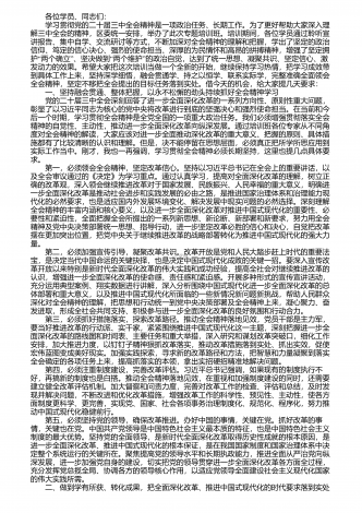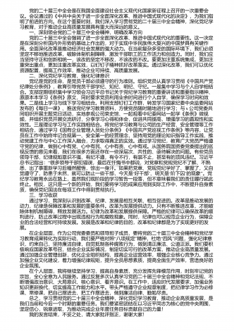 在党委理论中心组学习贯彻党的二十届三中全会精神,深化党纪学习教育研讨发言