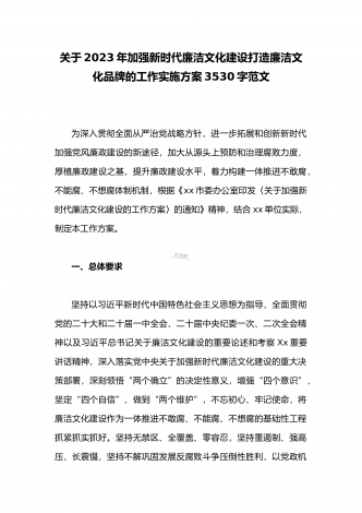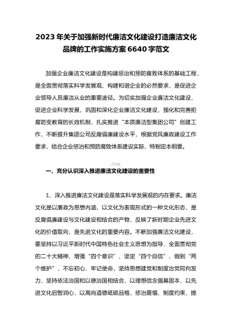 2023年关于全面加强新时代廉洁文化建设打造廉洁文化品牌的工作实施方案3600字范文