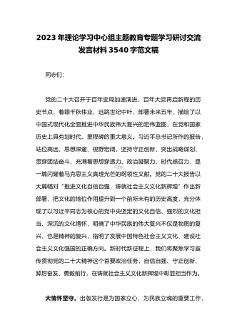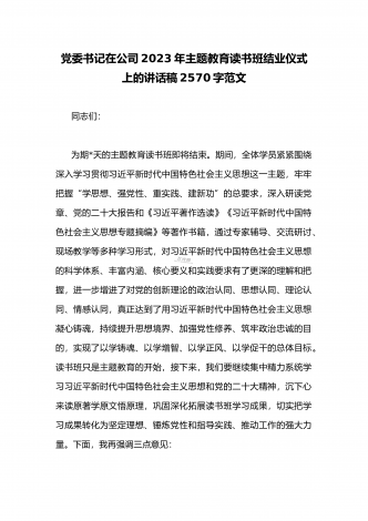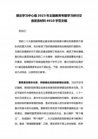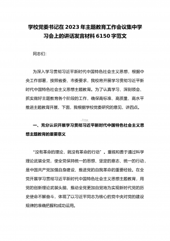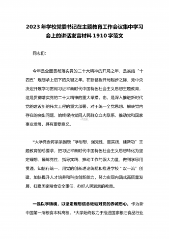 学校党委书记在2023年主题教育工作会议集中学习会上的讲话发言材料2160字范文