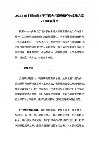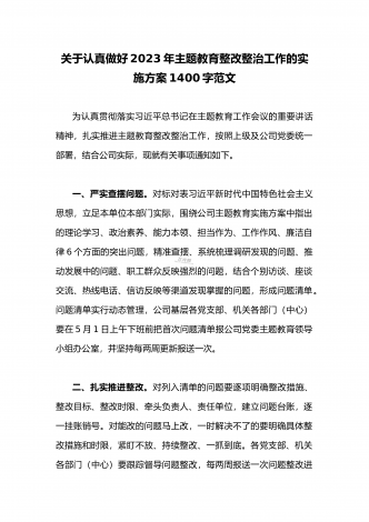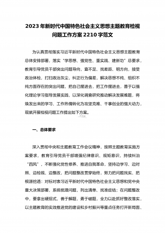 2023年新时代中国特色社会主义思想主题教育检视问题工作方案2210字范文