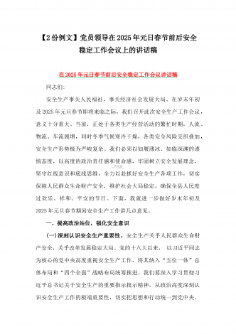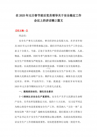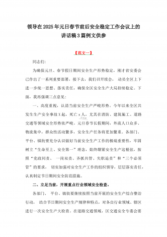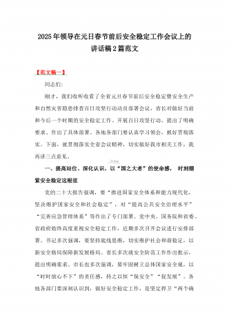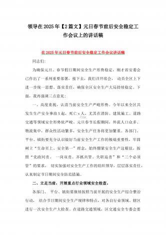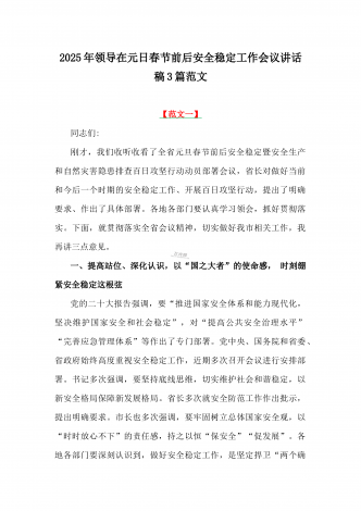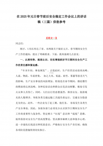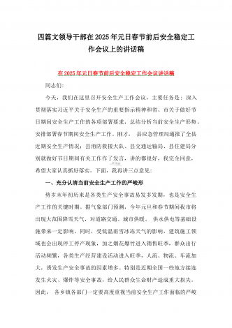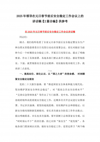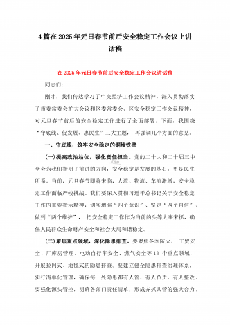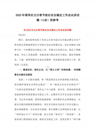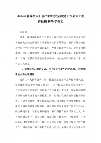 党员领导在2025年元日春节前后安全稳定工作会议上的讲话稿5460字范文稿