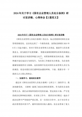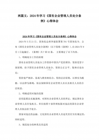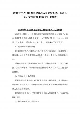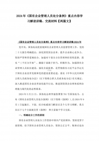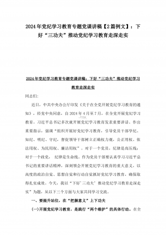 2024年党纪学习教育暨警示教育专题党课讲稿:以案明纪以纪正行,提升遵规守纪的高度自觉(六项纪律、典型案例)与党纪学习教育专题党课讲稿【2篇文】2024年党纪学习教育暨警示教育专题党课讲稿:以案明纪以纪正行,提升遵规守纪的高度自觉(六项纪律、典型案例)同志们:《中国共产党纪律条例》确了党的“六项纪律”:主要包括政治,组织和廉洁的纪律,群众的纪律,工作纪律和生活纪律。六项纪律为党员领导干部政治、廉洁、工作、生活等方方面面划定了纪律红线,是必须无条件遵守的准则。本次党纪学习教育的主要任务是原原本本、...