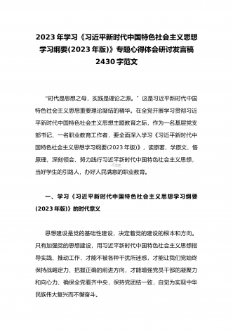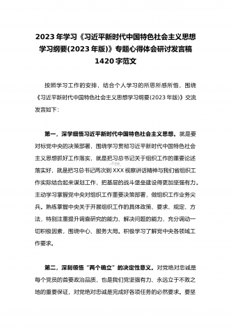 2023年全面学习《习近平新时代中国特色社会主义思想学习纲要(2023年版)》专题心得体会研讨发言稿2070字范文