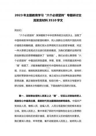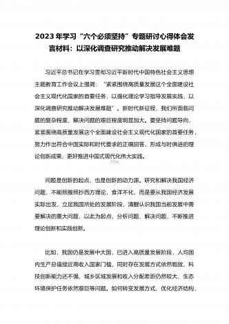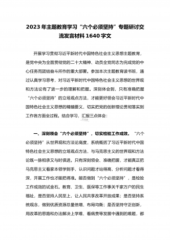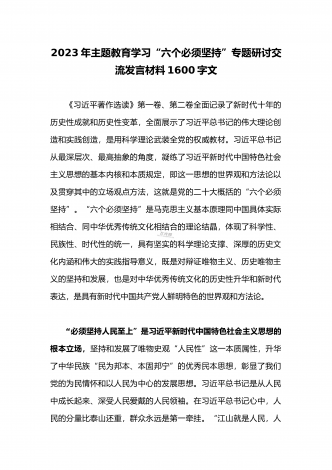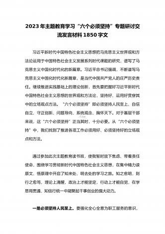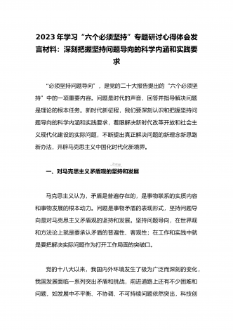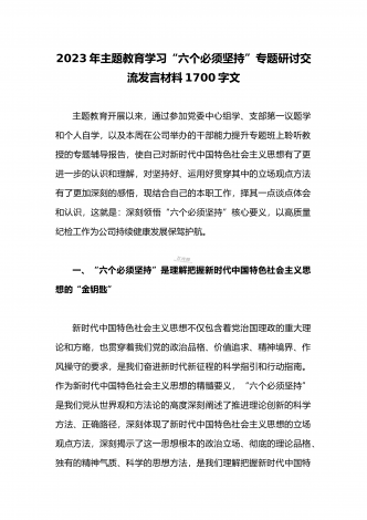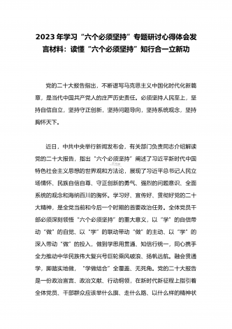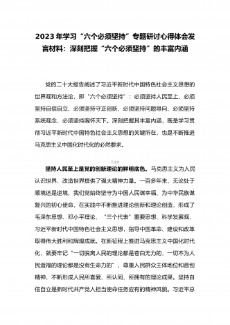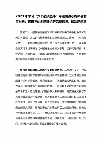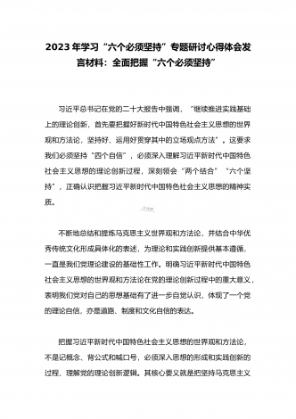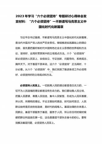 2023年学习“六个必须坚持”专题研讨心得体会发言材料:“六个必须坚持”一不断谱写马克思主义中国化时代化新篇章