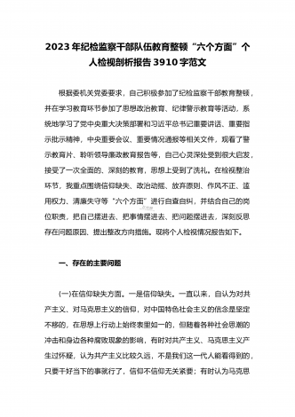 2023年纪检监察干部在纪检监察干部队伍教育整顿研讨交流会上的发言提纲1440字范文纪检监察机关是党的“纪律部队”,在推进全面从严治党、中国式现代化进程中肩负着特殊使命、发挥着重要作用。开展纪检监察干部队伍教育整顿,是当前纪检监察机关的一项重要政治任务。作为一名纪检监察干部,必须提高政治站位,保持政治清醒,充分认识纪检监察干部队伍教育整顿的重大意义和极端重要性、现实紧迫性,切实增强思想自觉和行动自觉,锚定“铸就政治忠诚、清除害群之马、健全严管体系、增强斗争本领”目标任务,紧扣“学习教育、检视整治...