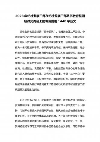 2023年纪检监察干部在纪检监察干部队伍教育整顿研讨交流会上的发言提纲1440字范文
