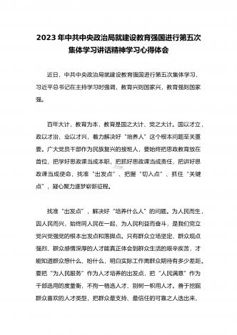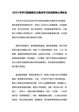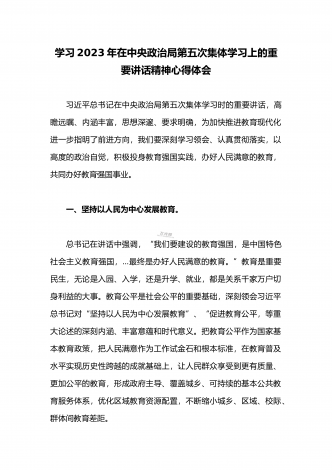 学习2023年在中央政治局第五次集体学习上的重要讲话精神心得体会1520字范文