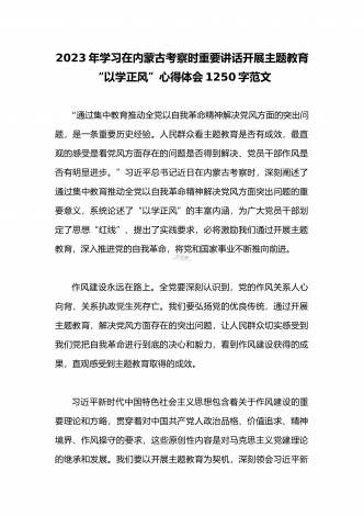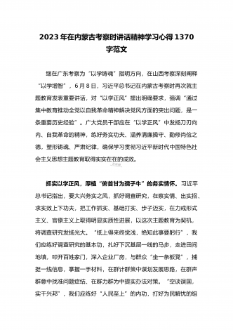 2023年在内蒙古巴彦淖尔考察并主持召开加强荒漠化综合防治和推进“三北”等重点生态工程建设座谈会讲话稿1610字范文习近平总书记强调:“人民群众看主题教育是否有成效,最直观的感受是看党风方面存在的问题是否得到解决、党员干部作风是否有明显进步。”以这次主题教育为契机,把习近平新时代中国特色社会主义思想转化为坚定理想、锤炼党性和指导实践、推动工作的强大力量,在以学铸魂、以学增智、以学正风、以学促干方面取得实实在在的成效,我们就一定能永葆党的先进性和纯洁性,以好作风好形象创造新伟业。近日,习近平总书记...
