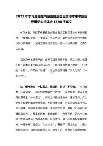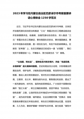 2023年在内蒙古巴彦淖尔考察并主持召开加强荒漠化综合防治和推进“三北”等重点生态工程建设座谈会讲话稿1610字范文